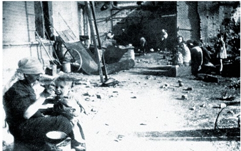 Жизнь женщин и детей в осажденном Сталинграде. Репродукция Л. И. Конова 1942 г.