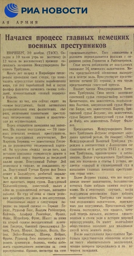 Минобороны опубликовало архивные материалы о ходе и итогах Нюрнбергского процесса, открывшегося 20 ноября 1945 года.